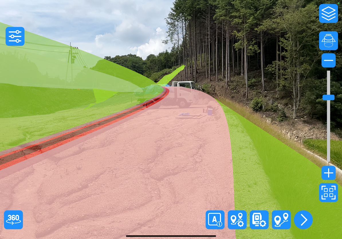 丁張を掛ける時間の削減及び切土の法尻確認の時間削減及び盛土の30cm標尺設置の削減ができます。